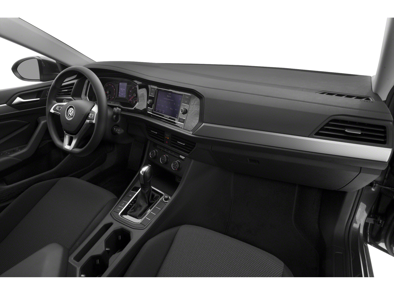 Inside, the Jetta's cabin is designed with your comfort in mind. The cloth upholstery and front bucket seats offer a pleasant and supportive driving experience, while the split-folding rear seat provides flexibility for your cargo needs.