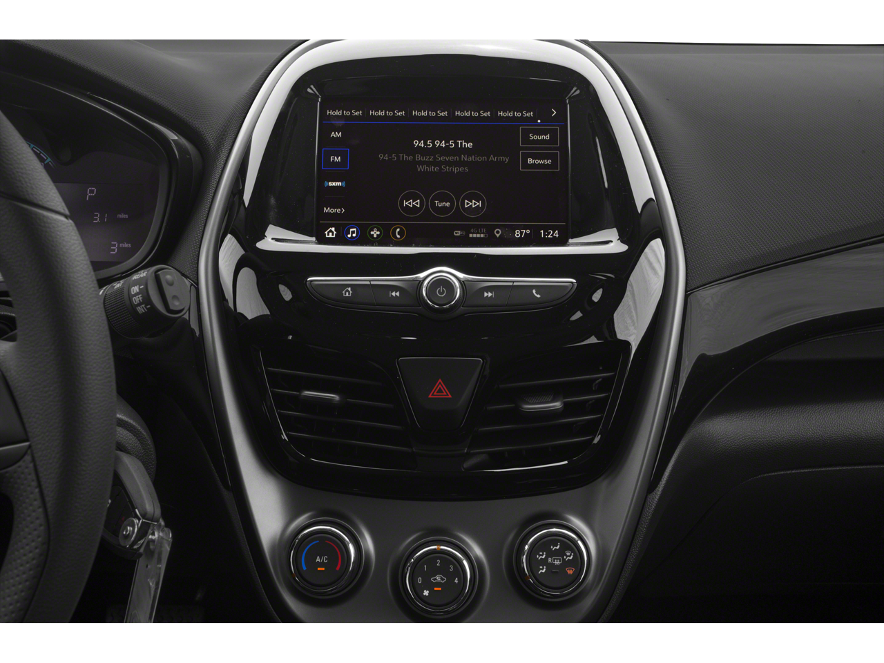 Inside, the Spark 1LT offers a comfortable and well-equipped cabin. The cloth-trimmed seats provide ample support, and the 6-speaker audio system with SiriusXM radio ensures your favorite tunes are always within reach. Dual-zone climate control, power windows, and steering wheel-mounted audio controls add to the Spark's user-friendly features.